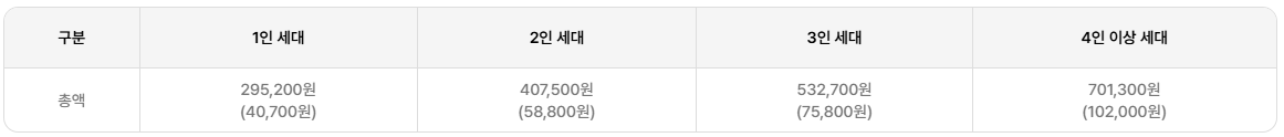 구입할 수 있는 전자바우처 (이용권)을 세대원수에 따라 4등급으로 차등 지급